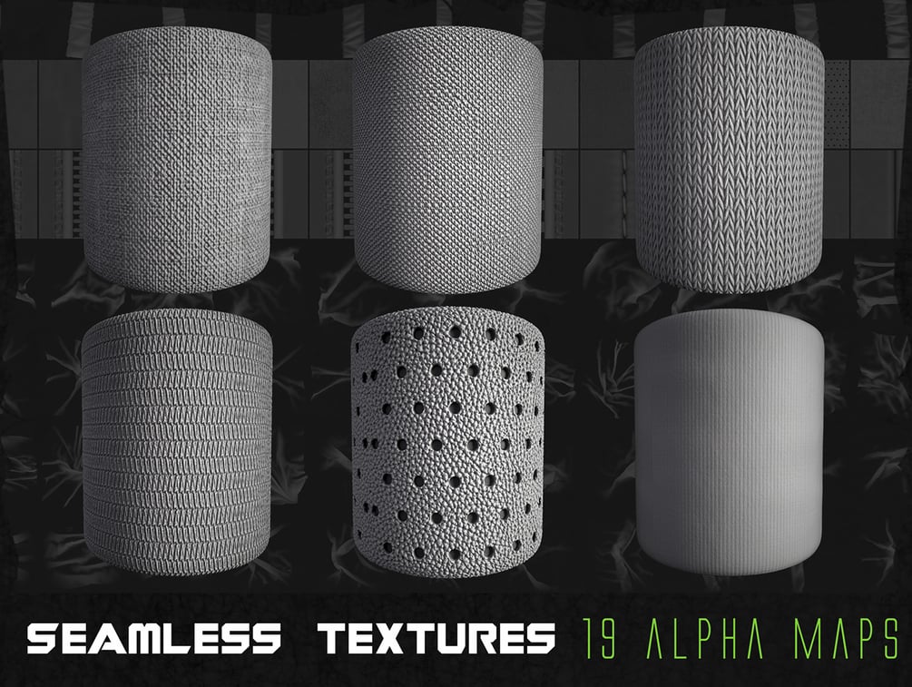 More than 150 Cloth alpha textures in this set. The alphas that designed specifically for cloth detailing, texturing and sculpting. The pack contains buttons, seamless textures, stitches, wrinkles and more goodies! All ready for commercial use. Created for the people that want to take their creations to the next level and improve/enhance the final result.